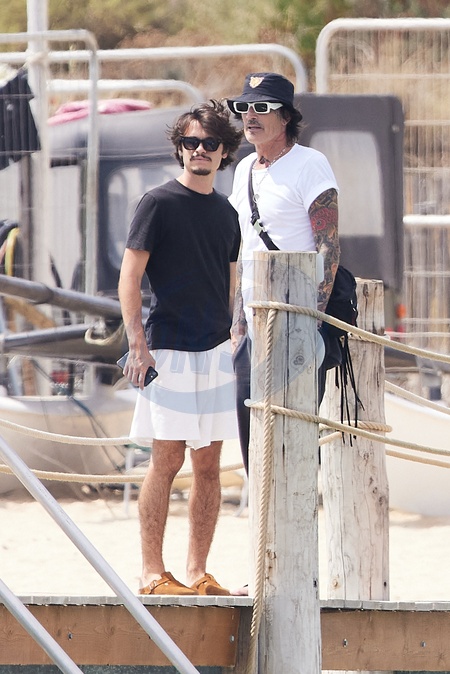 Tommy Lee i jego synowie Brandon i Dylan przybywają na plażę w Saint-Tropez, aby udać się na lunch