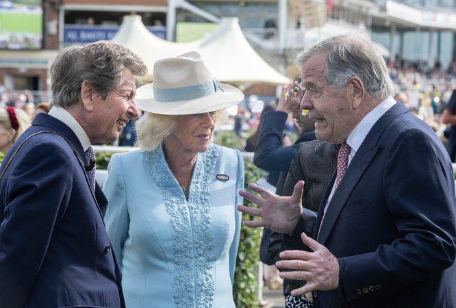 HM The Queen at York Racecourse.Pictured with John Warren (left) Racing Manager and Michael Stout (right) Trainer.Her Majesty The Queen, as Patron of York Racecourse, attends the Ebor Festival and open the racecourseâs latest development.24/08/2024, Credit:JULIAN SIMMONDS / Avalon
