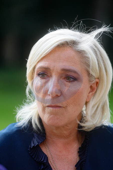 Marine Le Pen et Jordan Bardella sortent de leur entretien avec le président de la République à l'Elysée le 26 août 2024. © Christophe Clovis / Bestimage