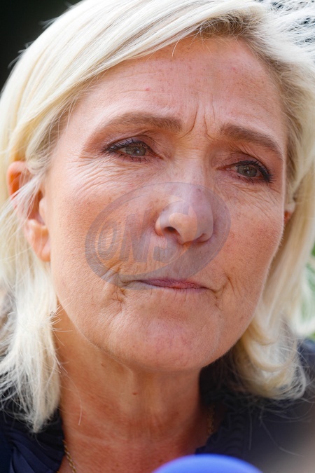 Marine Le Pen et Jordan Bardella sortent de leur entretien avec le président de la République à l'Elysée le 26 août 2024. © Christophe Clovis / Bestimage