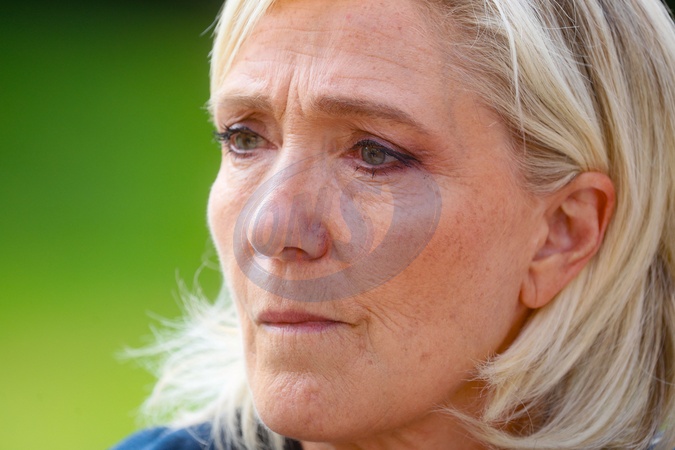 Marine Le Pen et Jordan Bardella sortent de leur entretien avec le président de la République à l'Elysée le 26 août 2024. © Christophe Clovis / Bestimage