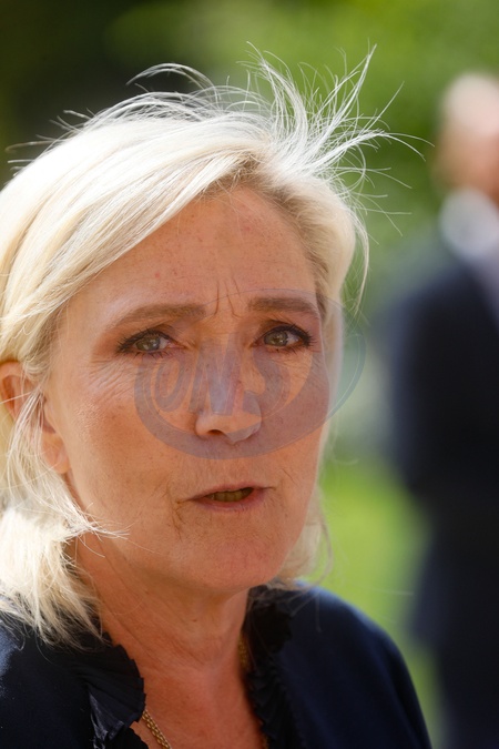 Marine Le Pen et Jordan Bardella sortent de leur entretien avec le président de la République à l'Elysée