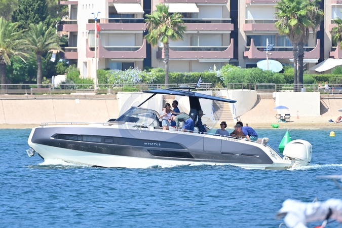 Exclusif - Prix Spécial - No Credit - BI - Sienna Miller et son compagnon Oli Green, avec leur fille de sept mois, sur un yacht à Saint-Tropez, le 22 août 2024. Déjà maman d'une fille de 11 ans, née de sa relation avec T.Sturridge, Sienna Miller a retrouvé les joies de la maternité, le 3 janvier dernier avec son cher et tendre, Oli Green. Merci de filouter le visage des enfants avant publication. Exclusive - Special Price - No Credit - BI - Sienna Miller and her partner Oli Green, with their seven-month-old daughter, on a yacht in Saint-Tropez, August 22, 2024. Already the mother of an 11-year-old daughter, born from her relationship with T. Sturridge, Sienna Miller rediscovered the joys of motherhood on January 3 with her dear and tender, Oli Green. Please pixelate children faces before publication.