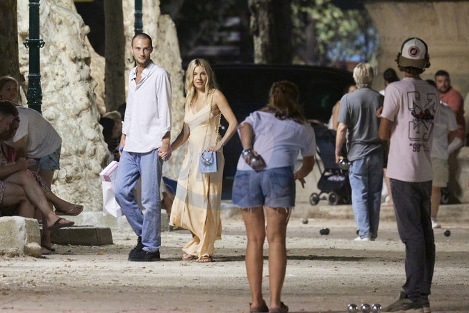 Exclusif - Prix Spécial - No Credit - BI - Sienna Miller et son compagnon Oli Green ont diné au restaurant "La Petite Plage" sur le Port de Saint Tropez, le 21 août 2024. Déjà maman d'une fille de 11 ans, née de sa relation avec T.Sturridge, Sienna Miller a retrouvé les joies de la maternité, le 3 janvier dernier avec son cher et tendre, Oli Green. Merci de filouter le visage des enfants avant publication Exclusive - Special Price - No Credit - BI - Sienna Miller and her partner Oli Green dined at the restaurant "La Petite Plage" on the Port of Saint Tropez, on August 21, 2024. Already the mother of an 11-year-old daughter, born from her relationship with T. Sturridge, Sienna Miller rediscovered the joys of motherhood on January 3 with her dear and tender, Oli Green. Please pixelate children faces before publication.