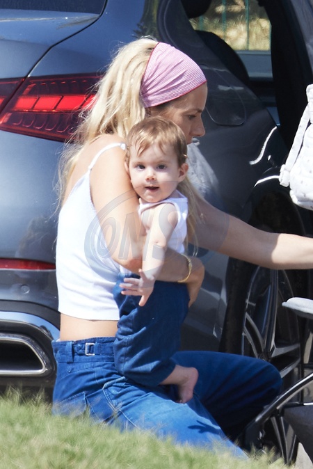 Exclusif - Prix Spécial - No Credit - BI - Sienna Miller, son compagnon Oli Green et leur fille de sept mois prennent un vol à l'aéroport de Nice, le 24 août 2024. Déjà maman d'une fille de 11 ans, née de sa relation avec T.Sturridge, Sienna Miller a retrouvé les joies de la maternité, le 3 janvier dernier avec son cher et tendre, Oli Green. Merci de filouter le visage des enfants avant publication Exclusive - Special Price - No Credit - BI - Sienna Miller, her partner Oli Green and their seven-month-old daughter take a flight at Nice airport on August 24, 2024. Already the mother of an 11-year-old daughter, born from her relationship with T. Sturridge, Sienna Miller rediscovered the joys of motherhood on January 3 with her dear and tender, Oli Green. Please pixelate children faces before publication.