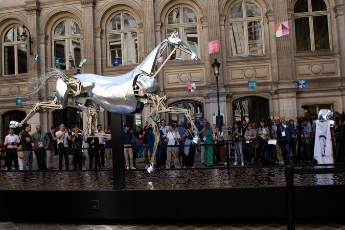 Illustration - Inauguration de l'exposition "Zeus / Ville de Paris", le cheval métallique de la cérémonie d'ouverture des Jeux Olympiques Paris 2024, à l'Hôtel de Ville de Paris. Le 27 août 2024 L'exposition sera ouverte gratuitement du 29 août au 8 septembre. © Céline Bonnarde / Bestimage Inauguration of the exhibition "Zeus/ Ville de Paris", the metallic horse of the opening ceremony of the Olympic Games Paris 2024, at the Hôtel de Ville in Paris. August 27, 2024 The exhibition will be open free of charge from 29 August to 8 September.