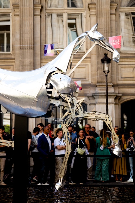 Illustration - Inauguration de l'exposition "Zeus / Ville de Paris", le cheval métallique de la cérémonie d'ouverture des Jeux Olympiques Paris 2024, à l'Hôtel de Ville de Paris. Le 27 août 2024 L'exposition sera ouverte gratuitement du 29 août au 8 septembre. © Céline Bonnarde / Bestimage Inauguration of the exhibition "Zeus/ Ville de Paris", the metallic horse of the opening ceremony of the Olympic Games Paris 2024, at the Hôtel de Ville in Paris. August 27, 2024 The exhibition will be open free of charge from 29 August to 8 September.