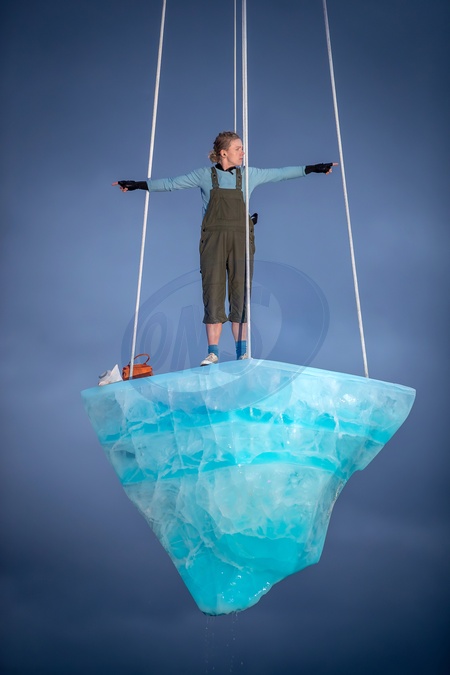 University of East London Docklands campus, UK. Saturday 24th and Sunday 25th August.Thaw is the a performance by Australian theatre company Legs on the wallPerformersperformed for 8 hours on a 2.7 tonne melting ice sculpture which was hoisted at times 20 meters in the air to a score by the Alaskan composer Matthew Burtner.Thaw addresses humankind's impact on the planet. The performance was part of the Greenwich and Docklands International Festival (GDIF) which is on from 23 August - 8th September., Credit:Abdullah Bailey / Avalon
