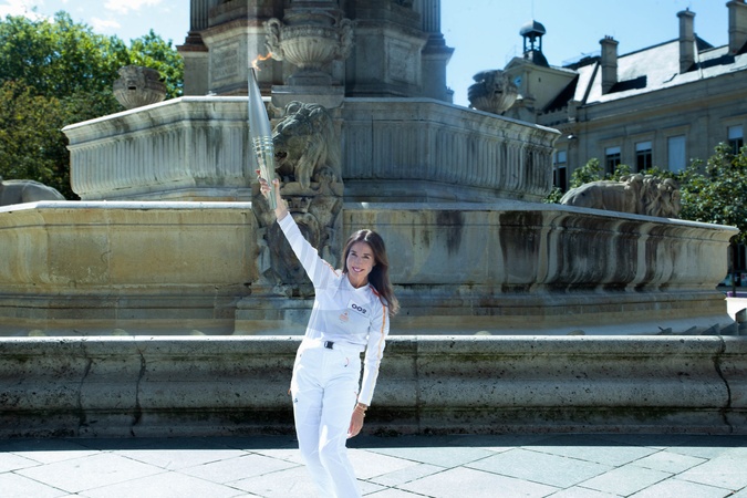 Elsa Zylberstein porte la flamme des Jeux Paralympiques à Paris, quelques heures avant la cérémonie d'ouverture