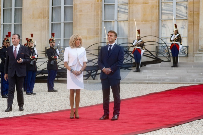 Prezydent Emmanuel Macron i jego żona Brigitte Macron witają głowy państw, rządów i organizacji międzynarodowych przed ceremonią otwarcia Igrzysk Paraolimpijskich Paryż 2024 w Pałacu Elizejskim w Paryżu