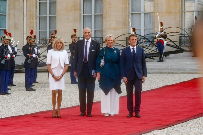 Prezydent Emmanuel Macron i jego żona Brigitte Macron witają głowy państw, rządów i organizacji międzynarodowych przed ceremonią otwarcia Igrzysk Paraolimpijskich Paryż 2024 w Pałacu Elizejskim w Paryżu