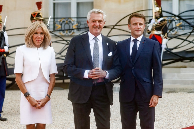 Prezydent Emmanuel Macron i jego żona Brigitte Macron witają głowy państw, rządów i organizacji międzynarodowych przed ceremonią otwarcia Igrzysk Paraolimpijskich Paryż 2024 w Pałacu Elizejskim w Paryżu