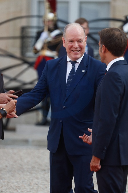 le prince Albert II de Monaco - Réception des chefs d'état, de gouvernement et d'organisation internationale en amont de la cérémonie d'ouverture des jeux paralympiques de Paris 2024 au palais de l'Elysée à Paris, France, le 28 août 2024. © Christophe Clovis / Bestimage President E.Macron and his wife B.Macron welcome heads of state, government and international organisations ahead of the opening ceremony of the Paris 2024 Paralympic Games at the Elysée Palace in Paris on august 28th 2024