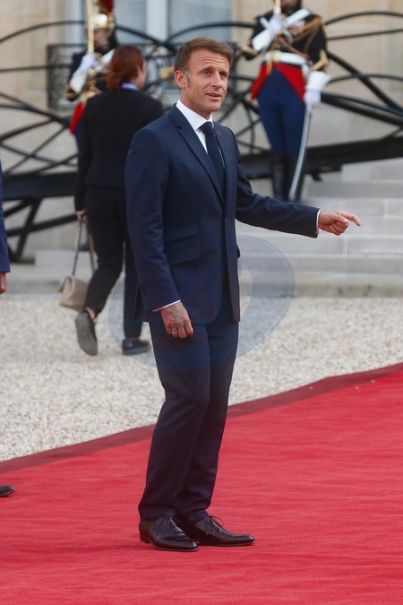 Emmanuel Macron - Réception des chefs d'état, de gouvernement et d'organisation internationale en amont de la cérémonie d'ouverture des jeux paralympiques de Paris 2024 au palais de l'Elysée à Paris, France, le 28 août 2024. © Christophe Clovis / Bestimage President E.Macron and his wife B.Macron welcome heads of state, government and international organisations ahead of the opening ceremony of the Paris 2024 Paralympic Games at the Elysée Palace in Paris on august 28th 2024