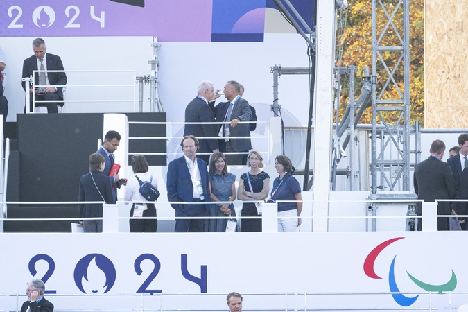 Jean-Marc Germain et sa femme Anne Hidalgo lors de la cérémonie d'ouverture des jeux paralympiques Paris 2024 place de la Concorde à Paris le 28 août 2024. © Perusseau / Jacovides / Bestimage Opening ceremony of the Paris 2024 Paralympic Games at Place de la Concorde in Paris on 28 August 2024.