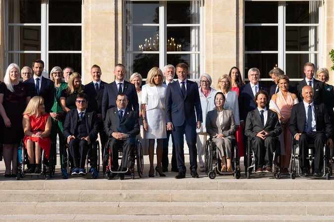 Prezydent Emmanuel Macron i jego żona Brigitte Macron witają głowy państw, rządów i organizacji międzynarodowych przed ceremonią otwarcia Igrzysk Paraolimpijskich Paryż 2024 w Pałacu Elizejskim.
