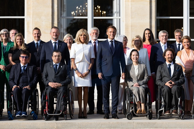 Prezydent Emmanuel Macron i jego żona Brigitte Macron witają głowy państw, rządów i organizacji międzynarodowych przed ceremonią otwarcia Igrzysk Paraolimpijskich Paryż 2024 w Pałacu Elizejskim.