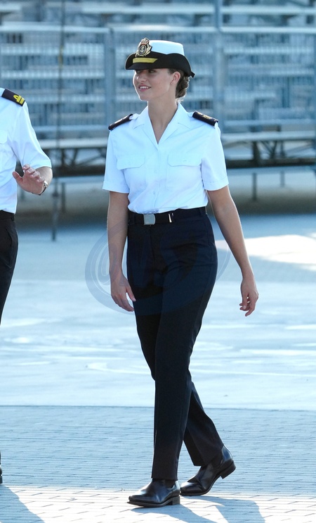 La princesse Leonor d'Espagne fait son entrée à l'école navale de Marin le 29 août 2024. © Lalo Yasky / Bestimage Crownprincess Leonor during her first day at the Naval School of Marín. Pontevedra - August 29, 2024