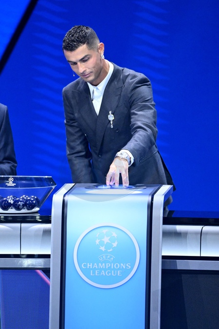 Cristiano Ronaldo durant le tirage au sort des rencontres de la phase régulière de la Ligue des champions pour la saison 2024-2025 et remises du prix du meilleur buteur de tous les temps de l'UEFA Champions League à Cristiano Ronaldo et du Prix du président de l'UEFA 2024 à Gianluigi Buffon, au Grimaldi Forum à Monaco, le 29 août 2024. © Bruno Bebert / Bestimage C.Ronaldo receives the award for all-time top scorer at the UEFA draw for the 2024/2025 season at the Grimaldi Forum in Monaco on august 29th 2024