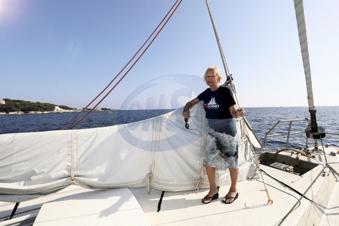 Exclusif - Agnès B. et son équipage à bord de la goélette "Tara" à Antibes dans le cadre du projet mené par la Fondation Tara Océan le 29 aoôut 2024. La Fondation Tara Océan est la première Fondation Reconnue d'Utilité Publique (FRUP) consacrée à l'Océan en France. Elle mène depuis 2003 des expéditions scientifiques pour étudier la biodiversité marine, ainsi qu'observer et anticiper les impacts du changement climatique et des pollutions. Grâce à son statut d'Observateur Spécial à l'ONU, elle participe activement aux décisions importantes pour l'Océan. © Patrice Lapoirie / Nice Matin / Bestimage Exclusive - For Germany call for price - Agnès B. and her crew aboard the schooner "Tara" in Antibes as part of the project led by the Tara Océan Foundation on August 29, 2024. The Tara Ocean Foundation is the first Recognized Public Utility Foundation (FRUP) dedicated to the Ocean in France. Since 2003, she has been leading scientific expeditions to study marine biodiversity, as well as observe and anticipate the impacts of climate change and pollution. Thanks to its status as Special Observer at the UN, it actively participates in important decisions for the Ocean.