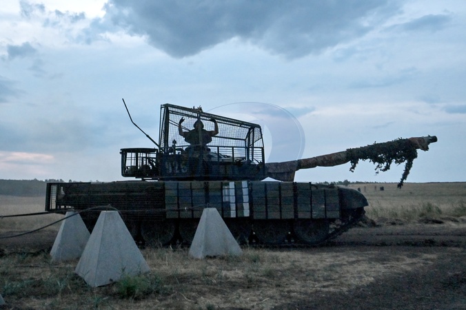ZAPORIZHZHIA REGION, UKRAINE - JULY 21, 2024 - A tanker of the 118th Separate Mechanized Brigade poses for a photo on a T-72 tank before the start of the night firing exercise in the Zaporizhzhia sector, Zaporizhzhia region, southeastern Ukraine, Credit:Dmytro Smolienko / Avalon