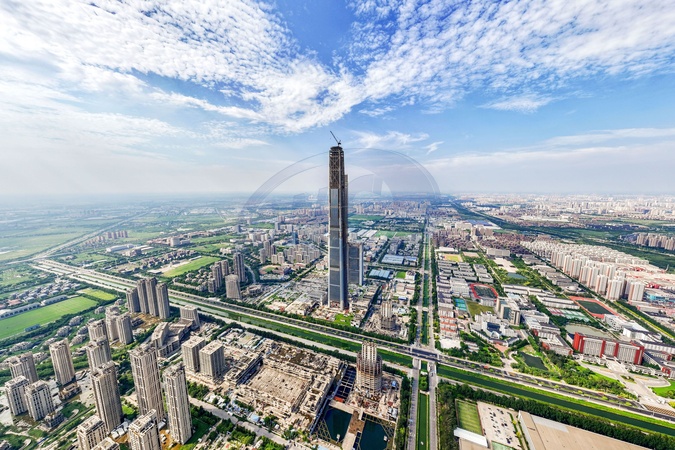 A view of the unfinished 597-meter-tall Goldin Finance 117 Tower in north China's Tianjin Municipality Wednesday, Aug. 28, 2024. The supertall made to the world's fifth place when it was topped out in 2015, but poor sales has failed its completion., Credit:FEATURECHINA / Avalon