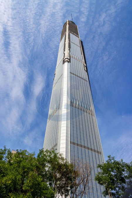 A view of the unfinished 597-meter-tall Goldin Finance 117 Tower in north China's Tianjin Municipality Wednesday, Aug. 28, 2024. The supertall made to the world's fifth place when it was topped out in 2015, but poor sales has failed its completion., Credit:FEATURECHINA / Avalon