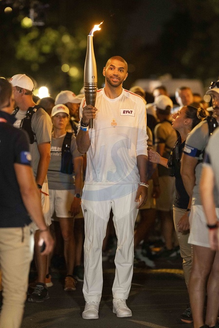 Info - Le basketteur français, Nicolas Batum, annonce sa retraite internationale à 35 ans - Exclusif - Nicolas Batum - La flamme olympique arrive sur le parvis de l'hôtel de ville de Paris à l'occasion du "Concert de Paris" le 14 juillet 2024. Le concert était retransmis en direct sur France 2 et sur France Inter. © Christophe Clovis- Pierre Perusseau / Bestimage Exclusive - For Germany call for price - No Web for Belgium and Switzerland - The Olympic flame arrives on the forecourt of Paris City Hall during the Paris concert on the forecourt of Paris City Hall on July 14, 2024. The concert was broadcast live on France 2 and France Inter.