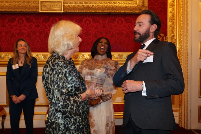 Britain's Queen Camilla talks with Craig Revel Horwood during a reception to celebrate the Commonwealth Diaspora of the United Kingdom, ahead of the Commonwealth Heads of Government Meeting in Samoa, at St. James's Palace, in London on October 2, 2024., Credit:ADRIAN DENNIS / Avalon