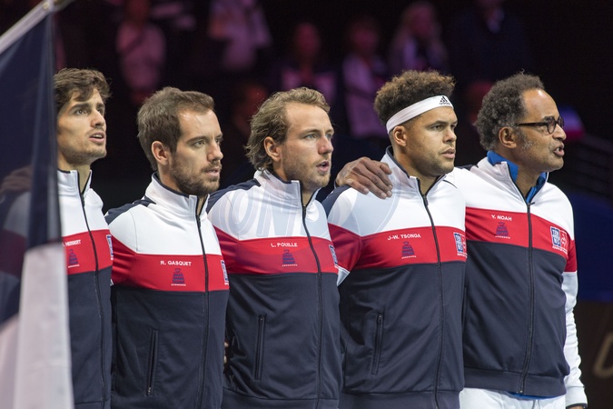 Info - Richard Gasquet annonce sa fin de carrière après Roland-Garros 2025 - Pierre-Hugues Herbert , Richard Gasquet , Lucas Pouille , Jo-Wilfried Tsonga et Yannick Noah - 4eme match de la Finale de la coupe Davis en simple opposant la France à la Belgique au Stade Pierre Mauroy à Lille , le 26 novembre 2017. © Perusseau - Ramsamy / Bestimage Davis Cup World Group Final - France v Belgium - Day three. On november 26th 2017