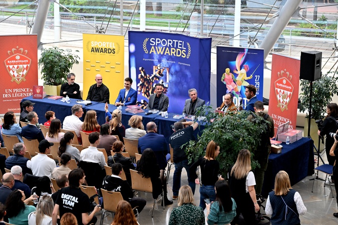 Exclusif - Marco Simone, Andréa Raggi, Louis Ducruet, Ludovic Giuly, Claude Puel et Alfred Vitalis - Louis Ducruet, le fils de la princesse Stéphanie et président de l'équipe de football caritative du prince Albert II de Monaco, son oncle, "Les Barbagiuans", présente lors du Sportel 2024 au Grimaldi Forum à Monaco, le 27 octobre 2024, un ouvrage "Un Prince & des légendes" consacré à cette formation un peu particulière, créée autour d'un noyau dur d'anciens pros de l'A.S.M.. Pour cette présentation et séance de dédicace, Louis Ducruet était entouré de Marco Simone, Andréa Raggi, Ludovic Giuly, Claude Puel et Alfred Vitalis. Fondée en 1980 sous l'impulsion du prince Albert II, l'équipe de football non-officielle « Munegu Autu » est devenue en 2020 l'association non caritative « les Barbagiuans de Monaco ». Désormais sous la présidence de Louis Ducruet, elle réunit les légendes du football monégasque ainsi que d'autres personnalités en lien avec la principauté, sous un même maillot. L'engagement de cette équipe permet de récolter des fonds pour l'association de la princesse Stéphanie, Fight Aids, qui vient en aide aux personnes atteintes du VIH. Depuis une quinzaine d'années, la princesse et son staff organisent un match de football dans le cadre du Festival International du Cirque de Monte-Carlo. Pour maintenir cette tradition son fils, Louis Ducruet a repris le flambeau en 2020. Beaucoup de gens du cirque adorent le foot. Comme le premier lundi du festival est jour de relâche, Il y avait cette rencontre. Au départ, les amis du prince, et lui-même, avec son association des Barbagiuans affrontaient les artistes et tous les gens qui gravitent autour du festival. Le FC Cirque gagnait souvent à cette période-là. Le prince a commencé à ne plus beaucoup jouer et il a renforcé son équipe avec d'anciens joueurs de l'AS Monaco. Depuis quatre ans, Louis a pris l'affaire en main avec Romain Goiran, un entrepreneur monégasque, et Sébastien Frey, l'ancien gardien, notamment de l'AS Cannes, l'Inter Milan, Parme et la Fiorentina. Ils ont rendu la rencontre, qui se déroule au Stade Louis II, plus attractive avec d'ex-grands joueurs pro qui viennent jouer en faveur de Fight Aids. La première édition de la Fight Aids Cup avait rapporté près de 50 000 euros. Cet ouvrage de 224 pages "Un Prince & des légendes" concentre de nombreux témoignages, sous la plume du journaliste François Verdenet où chaque joueur revient notamment sur l'histoire d'un maillot de l'AS Monaco qui lui est cher. Plus d'une vingtaine y sont présentés, dont deux par le Prince et Louis Ducruet. Les bénéfices de ce livre vendu 50 Euros, co-signé Ducruet - Goiran - Verdenet, sont évidemment reversés à l'association de la princesse Stéphanie. © Bruno Bebert / Bestimage Exclusive - For Germany, please call for price - Louis Ducruet, the son of Princess Stéphanie and president of the charity football team of Prince Albert II of Monaco, his uncle, "Les Barbagiuans", presents during the Sportel 2024 at the Grimaldi Forum in Monaco, on October 27, 2024, a book "A Prince & Legends" dedicated to this rather special formation, created around a hard core of former A.S.M. pros. For this presentation and signing session, Louis Ducruet was surrounded by Marco Simone, Andréa Raggi, Ludovic Giuly, Claude Puel and Alfred Vitalis. Founded in 1980 under the leadership of Prince Albert II, the unofficial football team "Munegu Autu" became in 2020 the non-charitable association "Les Barbagiuans de Monaco". Now under the presidency of Louis Ducruet, it brings together the legends of Monegasque football as well as other personalities linked to the principality, under the same jersey. The commitment of this team helps raise funds for Princess Stéphanie's association, Fight Aids, which helps people with HIV. For about fifteen years, the princess and her staff have organized a football match as part of the Monte-Carlo International Circus Festival. To maintain this tradition, her son, Louis Ducruet, took over in 2020. Many people from the circus love football. As the first Monday of the festival is a day off, there was this meeting. At the beginning, the prince's friends, and himself, with his association Barbagiuans, faced the artists and all the people who gravitate around the festival. FC Cirque often won at that time. The prince began to play less and he strengthened his team with former players from AS Monaco. For four years, Louis has taken charge of the business with Romain Goiran, a Monegasque entrepreneur, and Sébastien Frey, the former goalkeeper, notably for AS Cannes, Inter Milan, Parma and Fiorentina. They have made the match, which takes place at the Stade Louis II, more attractive with former great professional players who come to play in favor of Fight Aids. The first edition of the Fight Aids Cup brought in nearly 50,000 euros. This 224-page book "A Prince & Legends" concentrates many testimonies, written by the journalist François Verdenet where each player returns in particular to the story of an AS Monaco jersey that is dear to him. More than twenty are presented, including two by the Prince and Louis Ducruet. The profits from this book sold for 50 Euros, co-signed Ducruet - Goiran - Verdenet, are obviously donated to the association of Princess Stéphanie. October 27th, 2024.