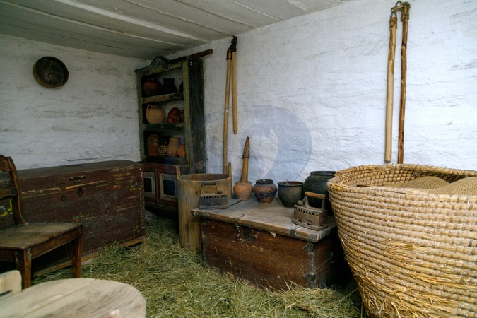 CHERKASY REGION, UKRAINE - OCTOBER 25, 2024 - Household items are in one of the restored 19th-century houses at the Taras Shevchenko Homeland National Preserve, Cherkasy region, central Ukraine. The Taras Shevchenko Homeland National Preserve unites the villages of Moryntsi, Shevchenkove, Budyshche and Vilshana. These are the places where the famous Ukrainian poet and painter Taras Shevchenko spent his childhood years., Credit:KIRILL CHUBOTIN / Avalon