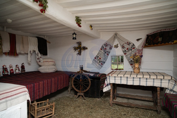 CHERKASY REGION, UKRAINE - OCTOBER 25, 2024 - A room is in the restored house which belonged to Taras Shevchenko's grandfather at the Taras Shevchenko Homeland National Preserve, Cherkasy region, central Ukraine. The Taras Shevchenko Homeland National Preserve unites the villages of Moryntsi, Shevchenkove, Budyshche and Vilshana. These are the places where the famous Ukrainian poet and painter Taras Shevchenko spent his childhood years., Credit:KIRILL CHUBOTIN / Avalon