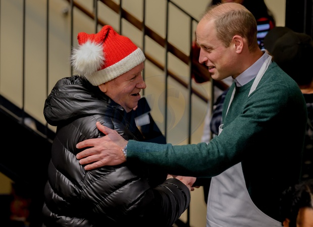 11/12/2023. London, UK. The Prince of Wales joins volunteers serving Christmas lunch at The Passage in central London. A scene from part one of the documentary "We Can End Homelessness", which follows the first year of Homewards, Prince William's ambitious five-year program that aims to show it is possible to end homelessness, by working with six locations across the U.K., Credit:Pete Maclaine / Avalon