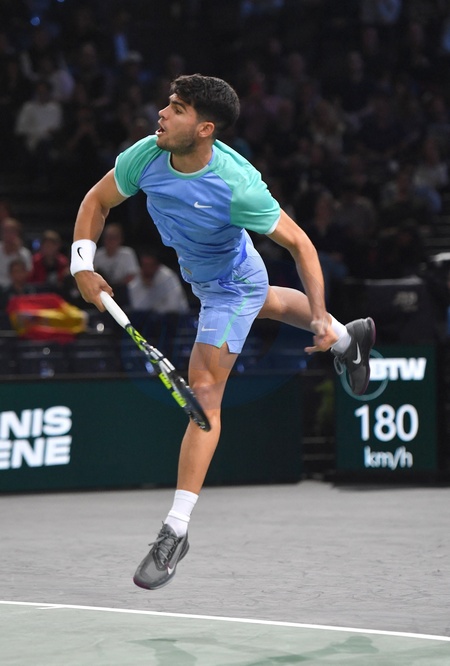 Carlos Alcaraz - Ugo Humbert remporte son huitieme de finale face à Carlos Alcaraz lors du tournoi de tennis ATP Masters 1000 de Paris (Paris Rolex Master ) à l'Accor Arena - Palais Omnisports de Paris-Bercy - à Paris, France, le 31 octobre 2024. © Veeren/Bestimage Rolex Paris Masters at Accor Hotel Arena on October 31, 2024 in Paris, France.