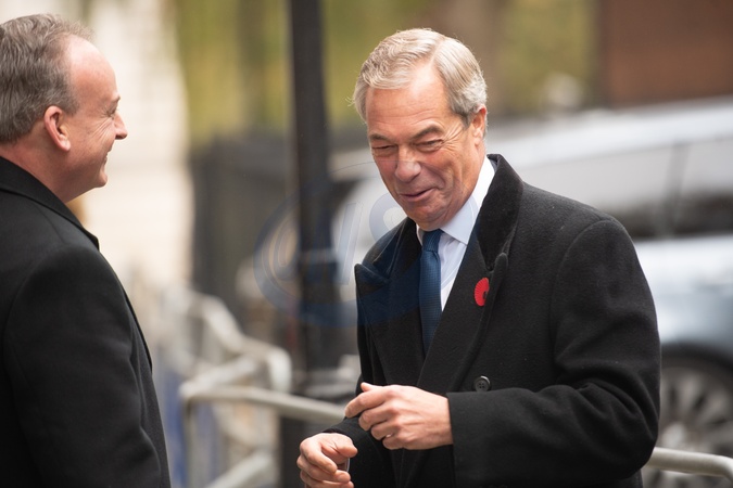Reform UK Leader Nigel Farage walks through Downing Street in London, England, UK on Sunday 10 November, 2024 after attending a remembrance Sunday Service in Whitehall commemorating the contribution of British and Commonwealth military and civilian servicemen and women in the two World Wars and later conflict., Credit:Justin Ng / Avalon