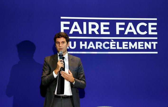Info - Gabriel Attal, alors ministre de l'Education nationale, a joué son propre rôle dans la série "Askip" (France Télévisions) - Gabriel Attal - G.Attal lance sa fondation "Faire Face", contre le harcèlement scolaire, au Philanthro-Lab à Paris, le 6 novembre 2024. A cette occasion, l'ancien Premier ministre était entouré d'Ophélie Meunier, Béatrice Le Blay, dont le fils Nicolas s'est suicidé en septembre 2023, Elian Potier, ancienne victime, la ministre de l'Éducation Anne Genetet. © Dominique Jacovides / Bestimage G. Attal launches his foundation "Faire Face", against school bullying, at the Philanthro-Lab in Paris, on November 6, 2024. On this occasion, the former Prime Minister was surrounded by Ophélie Meunier, Béatrice Le Blay, whose son Nicolas committed suicide in September 2023, Elian Potier, former victim, the Minister of Education Anne Genetet.