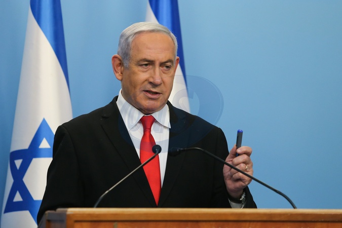 Photoshot - Le premier ministre israélien Benyamin Netanyahou en conférence de presse à propos de l'épidémie de Coronavirus (COVID-19)