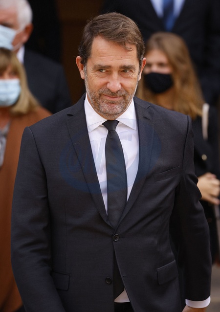Info - Christophe Castaner, ancien ministre de l'Intérieur, nommé conseiller pour l'entreprise chinoise de Fast Fashion Shein - Christophe Castaner - Sorties de la messe funéraire en hommage à Bernard Tapie en l'église Saint-Germain-des-Prés à Paris. Le 6 octobre 2021 © Jacovides-Moreau / Bestimage