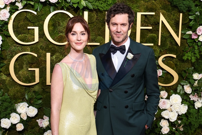 Leighton Meester and husband Adam Brody arrive at the 82nd Annual Golden Globe Awards held at The Beverly Hilton Hotel on January 5, 2025 in Beverly Hills, Los Angeles, California, United States.