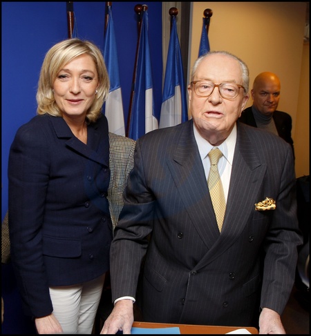 C'EST ENTOURE DE SA FILLE MARINE LE PEN, QUE JEAN MARIE LE PEN PRESENTE SES DERNIERS VOEUX A LA PRESSE EN TANT QUE PRESIDENT DU FRONT NATIONAL (FN)