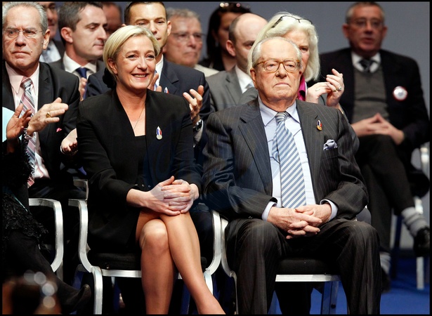 MARINE LE PEN ET SON PERE JEAN MARIE LE PEN - MARINE LE PEN EST ELUE PRESIDENTE DU FRONT NATIONAL AVEC 67,65 % DES VOIX, LORS DU XIVème CONGRES DU FRONT NATIONAL, AU PALAIS DES CONGRES DE TOURS