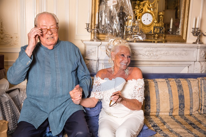 Exclusif - Prix spécial - No Web - Jean-Marie Le Pen avec Pierrette Lalanne (ex-femme de Jean-Marie Le Pen) - Jean-Marie Le Pen fête son 90ème anniversaire avec sa famille et ses amis dans sa demeure de Montretout, à Saint-Cloud le 30 juin 2018.