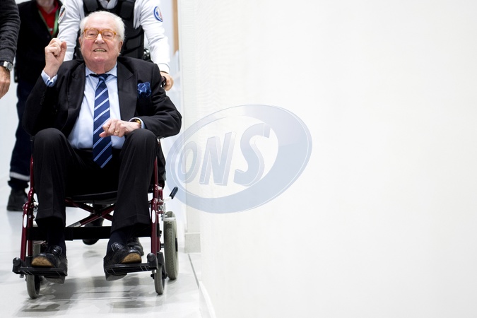 Jean-Marie Le Pen arrive en fauteuil roulant dans la salle d'audience 4.22 du tribunal de Paris