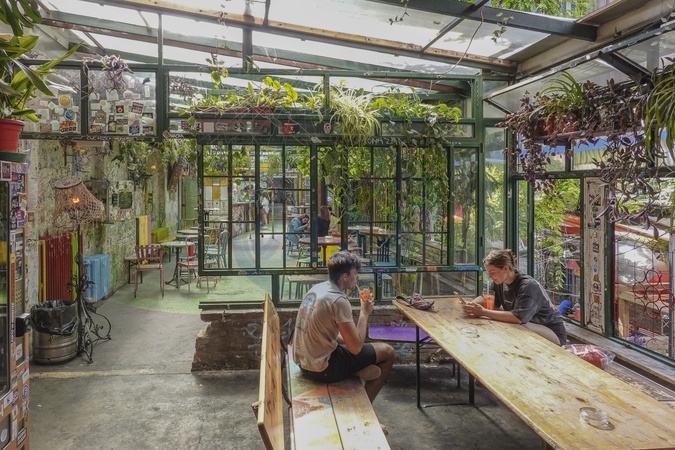 Hungary, Budapest, Szimpla Kert, Budapest's most popular Ruin bar. Ruin bars or ruin pubs are bars that were former abandoned buildings and now are an integral part of Budapest's nightlife., Credit:Fabio Mazzarella / Avalon
