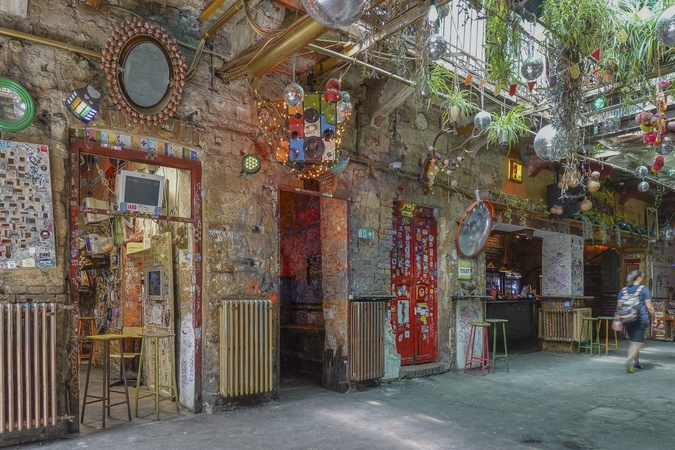 Hungary, Budapest, Szimpla Kert, Budapest's most popular Ruin bar. Ruin bars or ruin pubs are bars that were former abandoned buildings and now are an integral part of Budapest's nightlife., Credit:Fabio Mazzarella / Avalon