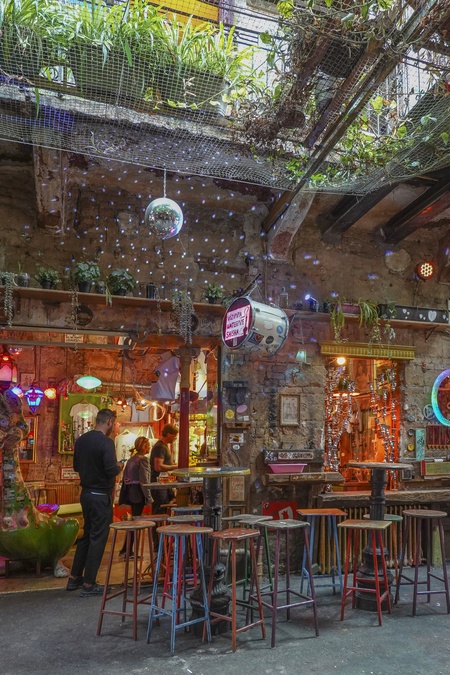 Hungary, Budapest, Szimpla Kert, Budapest's most popular Ruin bar. Ruin bars or ruin pubs are bars that were former abandoned buildings and now are an integral part of Budapest's nightlife., Credit:Fabio Mazzarella / Avalon
