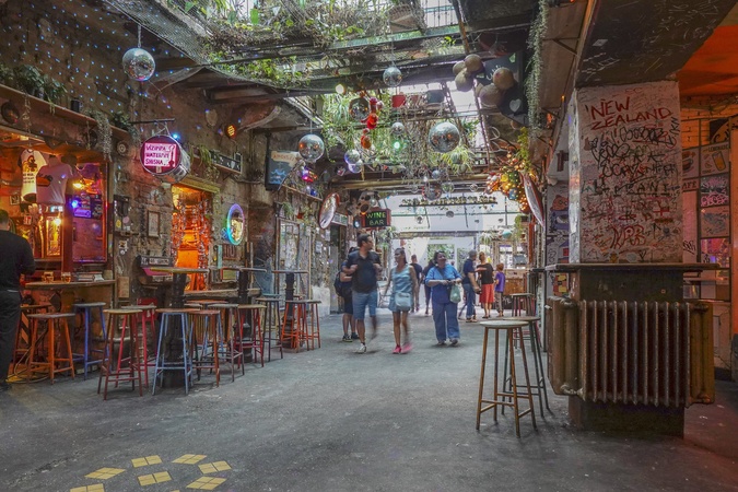Hungary, Budapest, Szimpla Kert, Budapest's most popular Ruin bar. Ruin bars or ruin pubs are bars that were former abandoned buildings and now are an integral part of Budapest's nightlife., Credit:Fabio Mazzarella / Avalon