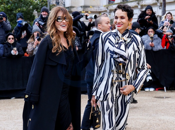 Carla Bruni Sarkozy et Farida Khelfa - Arrivées et sorties au défilé Schiaparelli au Petit Palais pour la Collection Haute Couture Printemps/Eté 2025 lors de la Fashion Week de Paris (PFW), France, le 27 janvier 2025. © Debis Guignebourg/Bestimage Arrivals and exits at the Schiaparelli fashion show at the Petit Palais for the Spring/Summer 2025 Haute Couture Collection during Paris Fashion Week (PFW), France, on January 27, 2025. © Debis Guignebourg/Bestimage