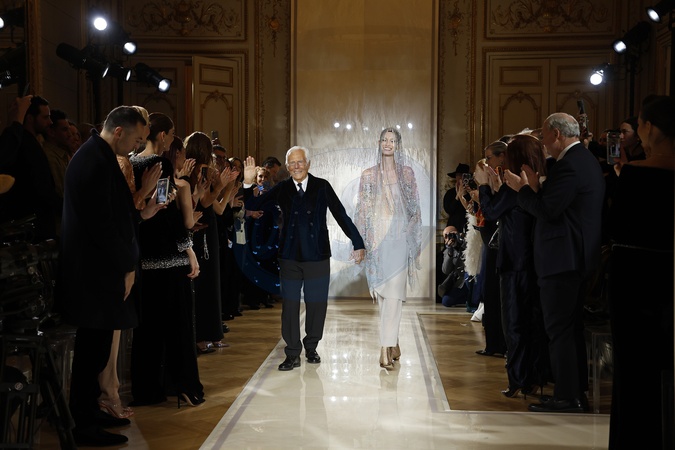 Designer Giorgio Armani takes a bow at Giorgio Armani Prive Haute Couture Spring Summer 2025 runway, Paris, France, 28 January 2025., Credit:x / Avalon